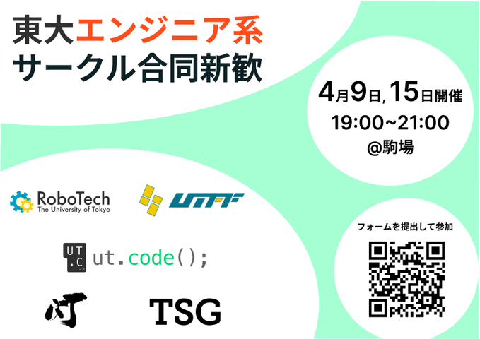 東大エンジニア系サークル合同新歓を開催します